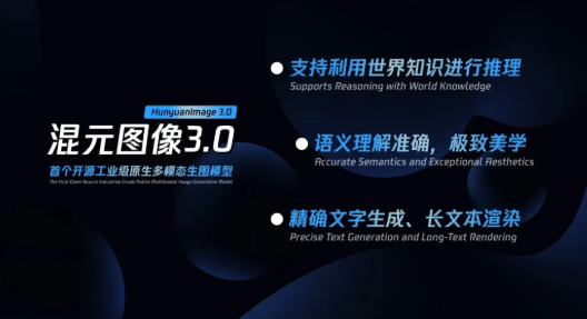 腾讯宣布正式发布混元图像3.0,这是业界首个开源的商用级原生多模态生图模型。该模型拥有80亿参数,是目前效果最优、参数量最大的开源生图模型,能够与顶尖闭源模型相媲美。用户可以通过腾讯混元官网体验该模型,模型的权重和加速版本也已在 GitHub 和 Hugging Face 等开源社区发布,供广大开发者免费下载和使用。 原生多模态技术架构 混元图像3.0的亮点在于其 “原生多模态” 技术架构,允许用户通过一个模型同时处理文字、图片、视频和音频等多种输入和输出形式,而不再依赖多个模型的组合。这种创新使得模型具备了图像生成和语义理解的双重能力,类似于一个拥有思考能力的 “智能画家”。 高级语义理解与自动生成 该模型的语义理解能力显著提升,用户只需简单输入提示词,例如 “生成一个月全食的四格科普漫画”,模型便能自动生成完整的漫画,无需用户对每一格进行详细描述。 混元图像3.0语义理解能力和美学质感也得到了大幅提升,可以实现对用户指令的精确生成,包括图片中的小字和长文本生成,都能较好地实现。 官方案例:比如输入:“你是一个小红书穿搭博主,请根据模特穿搭生成一张封面图片,要求:1.画面左侧是模特的OOTD全身图2.右侧是衣服的展示,分别是上衣深棕色夹克、下装黑色百褶短裙、棕色靴子、黑色包包 风格:实物摄影,要求真实,有氛围感,秋季美拉德色系穿搭”。在这个提示词下,混元图像3.0可以准确地把左侧博主的穿搭分解成右侧单独的衣物。 此外,混元图像3.0可以处理复杂的文字要求,生成详细的商品图、海报和插画,满足各类创作需求。 提升创作效率 混元图像3.0的发布不仅方便了插画师和设计师,还能帮助缺乏美术基础的内容创作者更轻松地制作出高质量的视觉内容。原本需要数小时的创作过程,现在可能仅需几分钟就能完成,大幅提升了创作效率。 多任务训练与未来展望 混元图像3.0基于50亿图文对和6TB 语料数据进行多模态混合训练,充分融合了多任务效果,从而实现超强的语义理解能力。腾讯团队透露,未来将陆续推出图生图、图像编辑、多轮交互等新功能,以进一步增强用户体验。