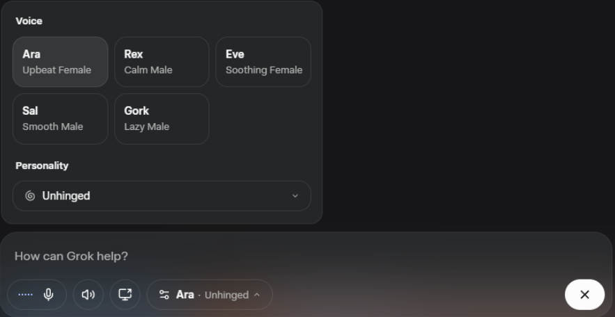 xAI 宣布其 AI 聊天助手 Grok 的网页版正式推出语音模式(Grok Voice for Web),为用户带来更自然、直观的交互方式。这一功能此前仅在 Grok 的 iOS 和 Android 应用上可用,此次扩展至网页端标志着 xAI 在多平台 AI 体验整合上的重要进展。语音模式亮点:多角色语音与个性化交互Grok Voice for Web 提供五种独特的语音选项:Ara、Rex、Eve、Sal 和 Gork,每种语音搭配不同的个性设定,用户可根据喜好选择不同的交互风格。例如,Ara 可能更适合轻松幽默的对话,而 Rex 则偏向冷静分析。这种多样化的语音和个性设计让用户体验更加丰富,满足从娱乐到专业咨询的多种需求。 此外,Grok Voice 支持屏幕共享功能,用户可分享浏览器标签、窗口或整个屏幕,与 Grok 进行实时互动。例如,开发者可共享代码界面,请求 Grok 提供调试建议;设计师可展示草图,获取优化反馈。这一功能使 Grok 不仅局限于文本或语音输入,而是向多模态交互迈进。 技术实现与用户体验Grok Voice for Web 的推出基于 xAI 对 Grok 多模态能力的持续优化。用户只需在网页端授权麦克风访问,即可与 Grok 进行语音对话。社交媒体反馈显示,部分用户对语音模式的流畅性和个性化体验表示赞赏,认为其为远程协作和快速查询提供了便利。然而,也有用户报告称,初次使用时可能遇到连接失败或页面崩溃的问题,xAI 团队已表示正在积极修复这些技术问题。 目前,语音模式是否对免费用户全面开放尚不清楚,但 xAI 强调,Grok 的网页版将继续免费提供基本功能,同时为订阅用户(如 SuperGrok 或 X 平台的付费用户)提供更高的使用配额。 市场背景与竞争格局Grok Voice for Web 的发布进一步巩固了 xAI 在 AI 助手领域的竞争力。相较于 OpenAI 的 ChatGPT、Anthropic 的 Claude 或谷歌的 Gemini,Grok 通过语音交互和屏幕共享功能,试图打造差异化的用户体验。尤其是在网页端,语音模式的加入降低了用户对移动设备的依赖,使 Grok 更适合桌面办公场景。 社交媒体上,用户对 Grok Voice 的讨论热度持续上升,部分开发者表示期待其与 xAI 正在开发的专业编码模型结合,进一步提升生产力。xAI 此前已宣布正在构建专为编码优化的 Grok 模型,以及增强视频生成和理解能力,这些进展或将为 Grok Voice 带来更多应用场景。 AIbase 观察:Grok Voice 的潜力与挑战从 AIbase 的视角来看,Grok Voice for Web 的推出是 xAI 在 AI 交互领域的重要一步。语音模式和屏幕共享功能的结合,使 Grok 在教育、开发和创意工作中展现出广泛的应用潜力。然而,技术稳定性和用户界面的优化仍是当前面临的挑战。xAI 需要通过快速迭代解决初期用户反馈中的问题,以确保语音模式能够无缝融入开发者与普通用户的工作流。 随着语音模式的逐步推广,Grok 有望在 AI 助手市场中占据独特定位。AIbase 将持续关注 xAI 的技术进展及其对 AI 交互生态的影响。 如何体验 Grok Voice for Web用户可通过 grok.com 访问 Grok 的网页版,授权麦克风后即可体验语音模式。目前,xAI 未公布语音模式的具体使用配额或是否需要订阅 SuperGrok 计划。欲了解更多详情,可访问 xAI 官网(https://x.ai/grok)或关注官方社交媒体更新。 |