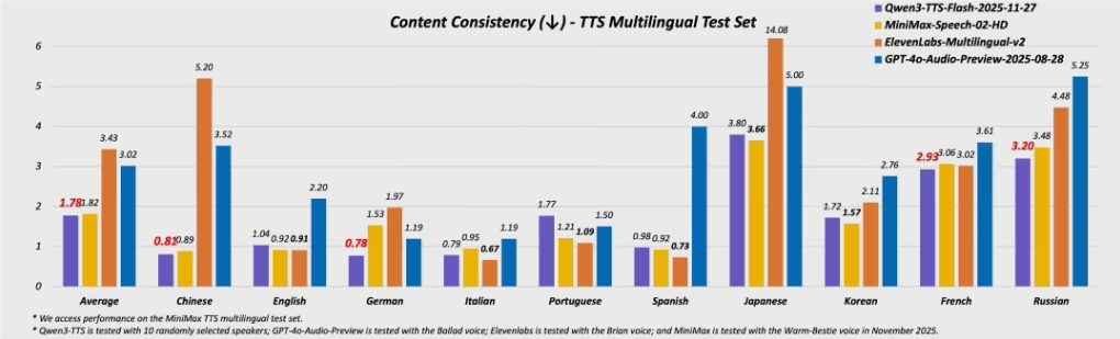 阿里通义千问发布新一代语音合成大模型Qwen3-TTS,即日起通过Qwen API向全球开发者免费开放。模型提供49种多角色音色,支持10种主流语言及10种中国方言,官方称其在MiniMax TTS multilingual test set上的平均词错误 ...
