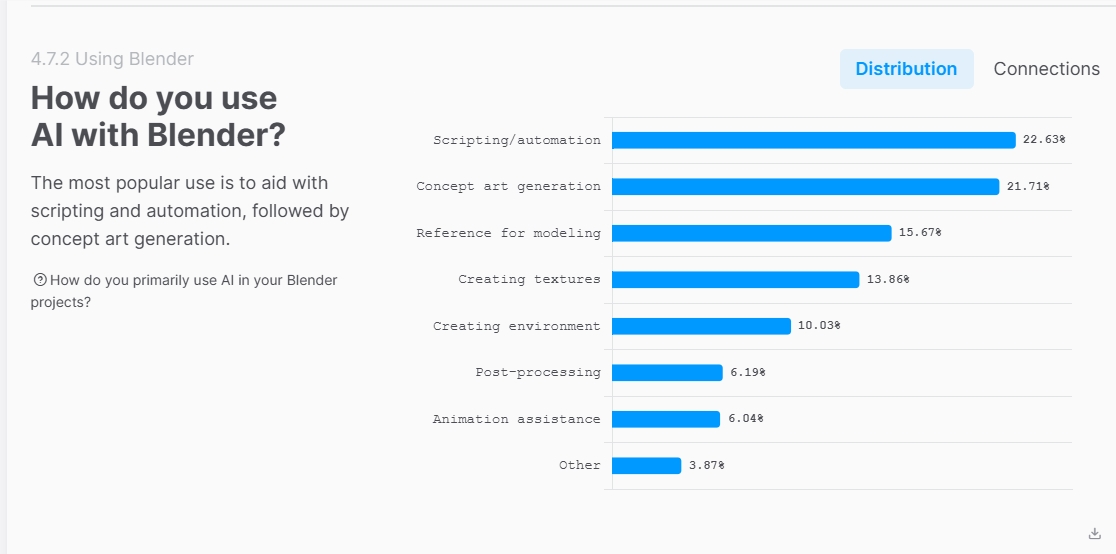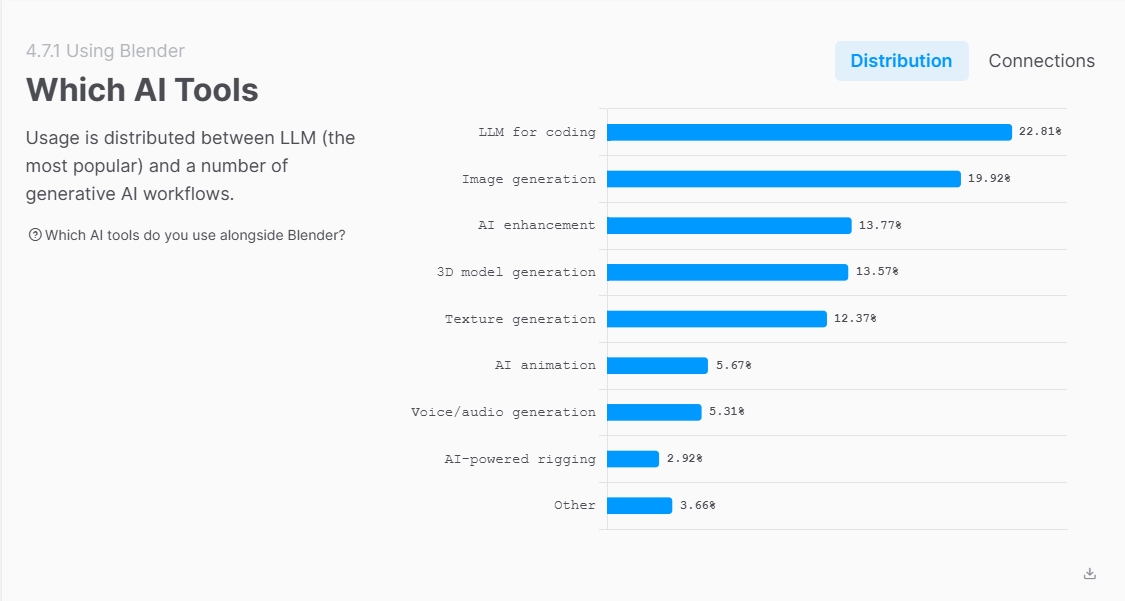 在 生成式人工智能(AIGC) 持续风靡的当下,专业创作领域对 AI 的接受度究竟如何?近日,Blender 基金会发布了 2025年度用户反馈调查报告,揭示了 3D 建模与数字雕刻创作者对 AI 技术的真实态度。AiGoe 对报告数据进行梳理发现,尽管 AI 工具层出不穷,但 专业 3D 创作者 仍高度依赖传统手工创作技艺。AI在专业3D工作流中的渗透率低报告显示,在对 5102 名 Blender 用户的调查中,超过一半的受访者目前 完全不使用 AI 工具。即使在那些已经尝试集成 AI 的用户中,经常使用 AI 的比例仅为7%。这一数据表明,在追求精确造型与艺术表达的 3D 建模和数字雕刻领域,手工创作仍占主导地位,AI 更多被视为辅助工具而非创作主体。 AI更多被用作“数字学徒”在已经使用 AI 的创作者中,最常见的应用场景是 脚本编写与自动化处理(占比约 22.6%),其次是 辅助生成概念草图。换句话说,AI 在专业 3D 制作中更多扮演 效率提升工具 的角色,而非直接产出最终艺术品。创作者们利用 AI 来加速重复性任务和初步设计,保留了对细节与艺术表达的完全掌控。 年轻化、专业化用户群体偏好传统创作调查还显示,Blender 用户群体呈现 年轻化和专业化 特征,主要集中在 19 至 35 岁,涵盖美国、德国和中国的专业美术师与设计师。对于这些核心用户而言,软件的 开源特性 与纯粹的创作乐趣(Net Promoter Score 高达 82.5 分)远比追逐 AI 新潮更有吸引力。 AI在专业创作领域的未来趋势尽管生成式 AI 在概念设计、动画预览和辅助建模等方面显示出潜力,但 Blender 2025 年度报告表明,AI在高精度艺术创作中的渗透仍有限。创作者们更倾向于将 AI 作为工具链的一部分,用于 提高工作效率、优化流程,而非替代核心创作能力。 随着 AI 技术不断成熟,预计未来 Blender 社区可能会逐步增加 AI 辅助功能,但 手工建模与数字雕刻的专业技能仍将保持核心地位。对于希望在 3D 设计、动画制作和数字艺术领域保持竞争力的创作者来说,掌握传统建模技艺与合理运用 AI 工具将成为双重必备能力。 |